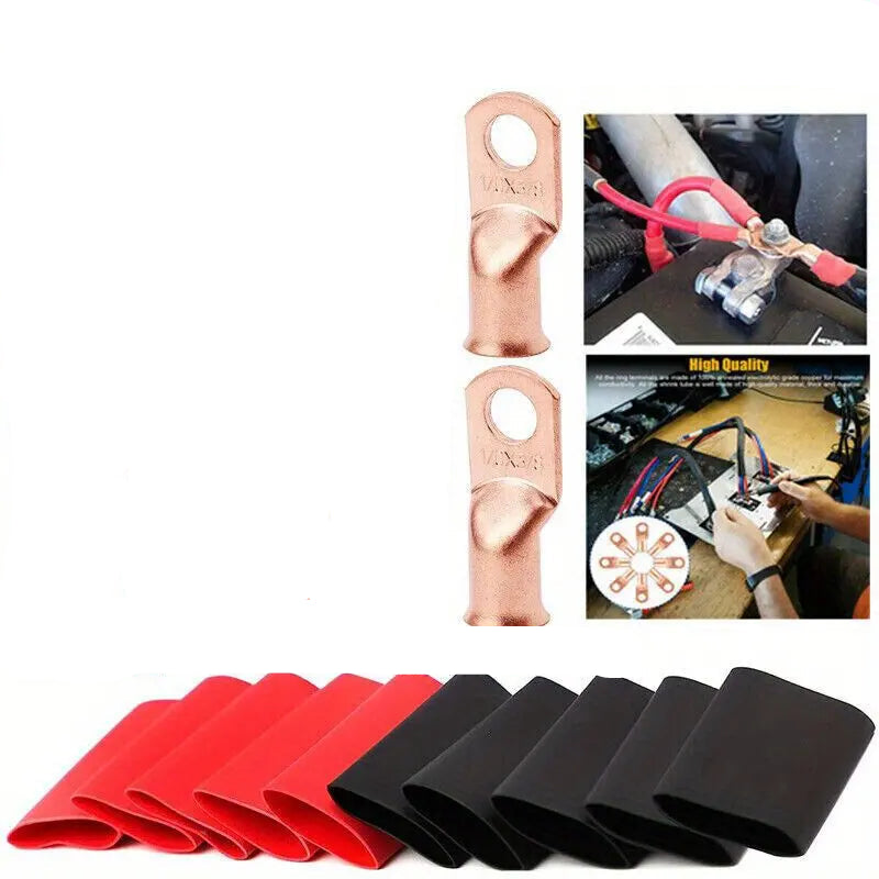 These 1/0 x 3/8 copper battery lugs are designed for heavy-duty use and provide a reliable electrical connection for your battery. The pair is perfect for a range of applications, including automotive, marine, and industrial uses. Made with high-quality materials, these lugs ensure long-lasting performance and maximum conductivity for your battery.