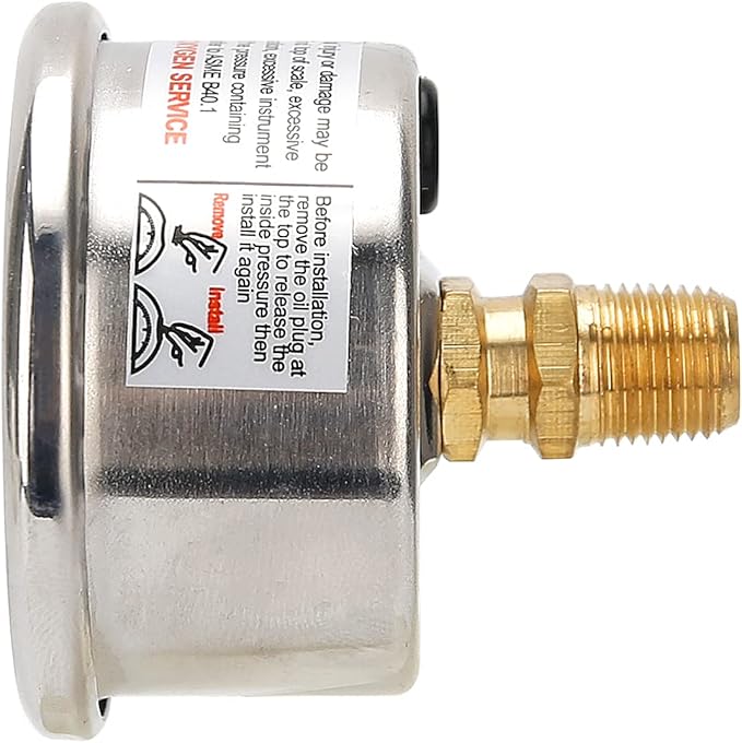 This replacement fuel pressure gauge has a 304 Stainless Steel Case. 0-15 PSI, +/-3-2-3%. This is perfect for installing in tight spaces. Great for monitoring air, fuel or oil pressure. Utilizes 1/8" NPT male fitting on back of gauge for installation. Liquid filled provides smooth pointer movement and extended service in harsh environments. Has a design for superior resistance to shock, vibration, and the elements.
