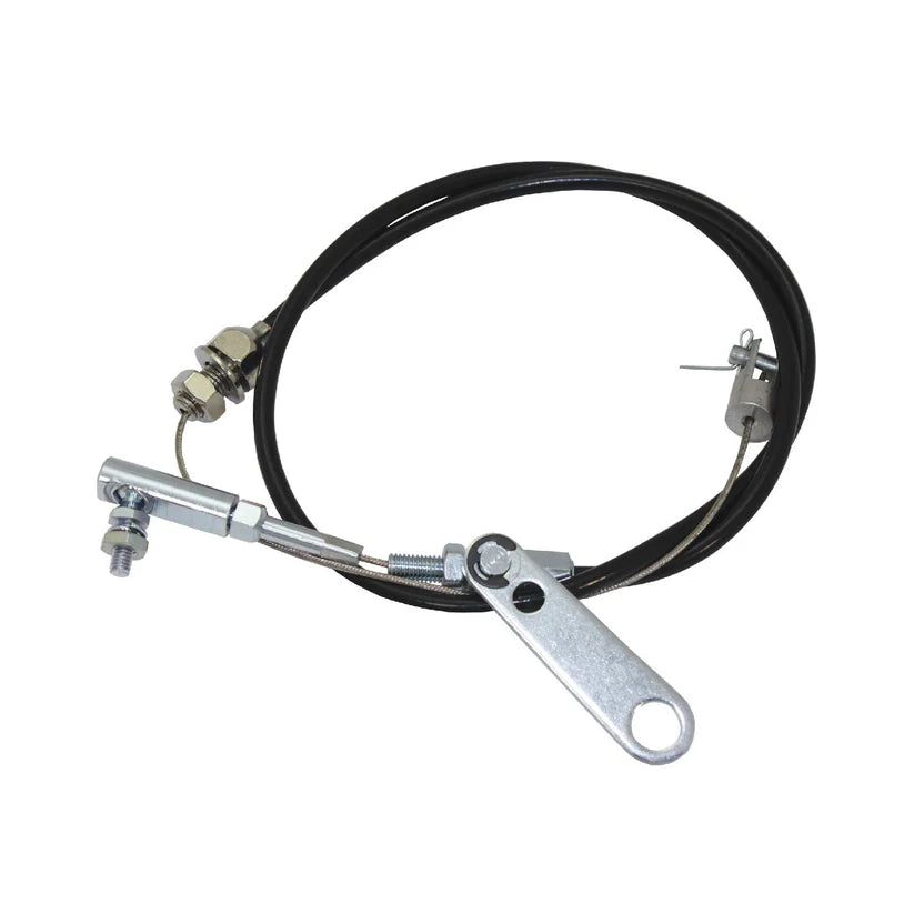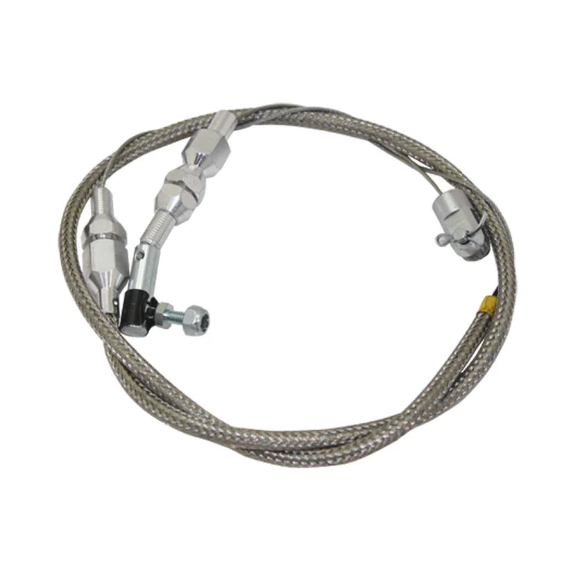 We offer this 24" universal stainless steel throttle cable with a black plastic jacket and comes with all the correct fittings. We also offer this 24" universal throttle cable with steel braided jacket. You can have this quality stainless steel cable with a stainless jacket or black.