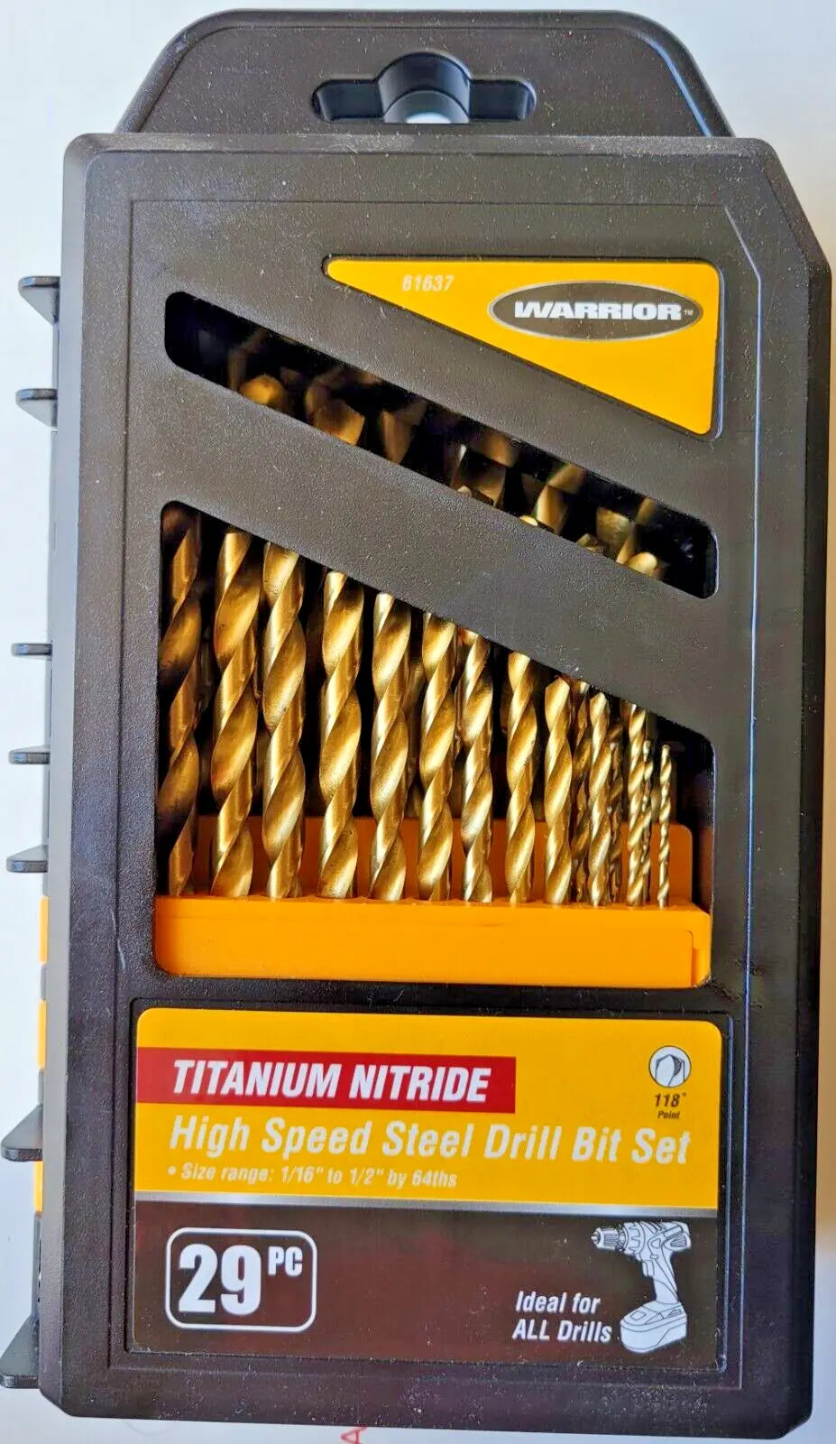 High speed steel titanium drill bits run cooler, drill smoother and last up to three times longer than your standard drill bit set. The titanium coating protects the steel bit for extended performance. The drill bit set features regular 118° tips for drilling in wood, metal, plastic and most other materials.