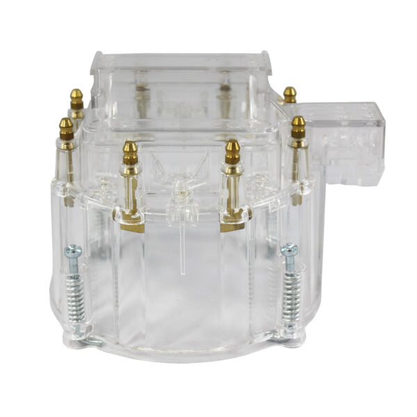 This cap is a replacement for HEI Distributor OEM Cap and Rotor. We offer them in Black, Red, Blue, Orange, and Clear. The kit includes an 8-cylinder cap, rotor, and standard dust cover. It's composed of a high-strength polymer and the cap features solid brass terminals. It is designed to fit a GM or TSP HEI disbutor.