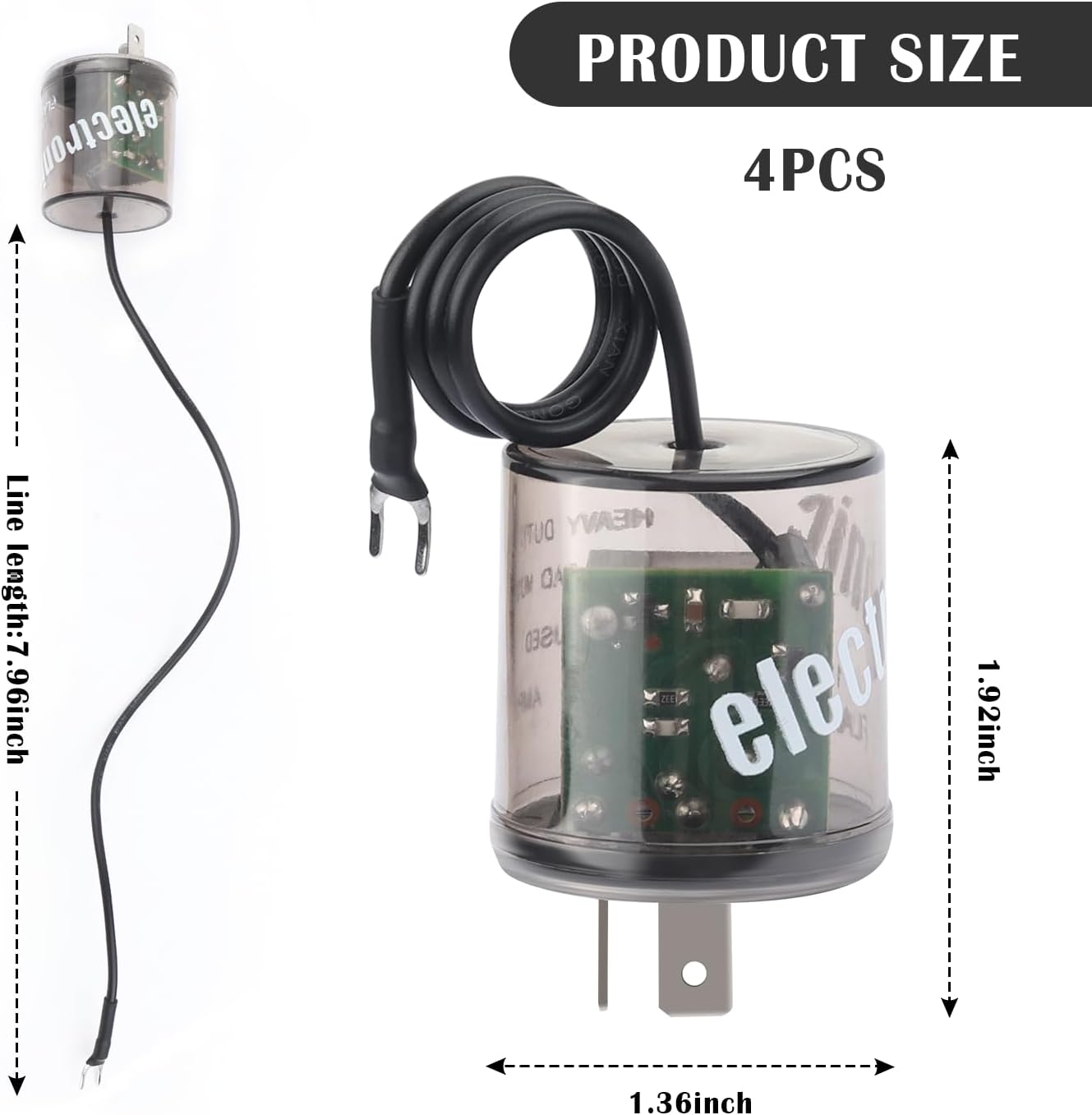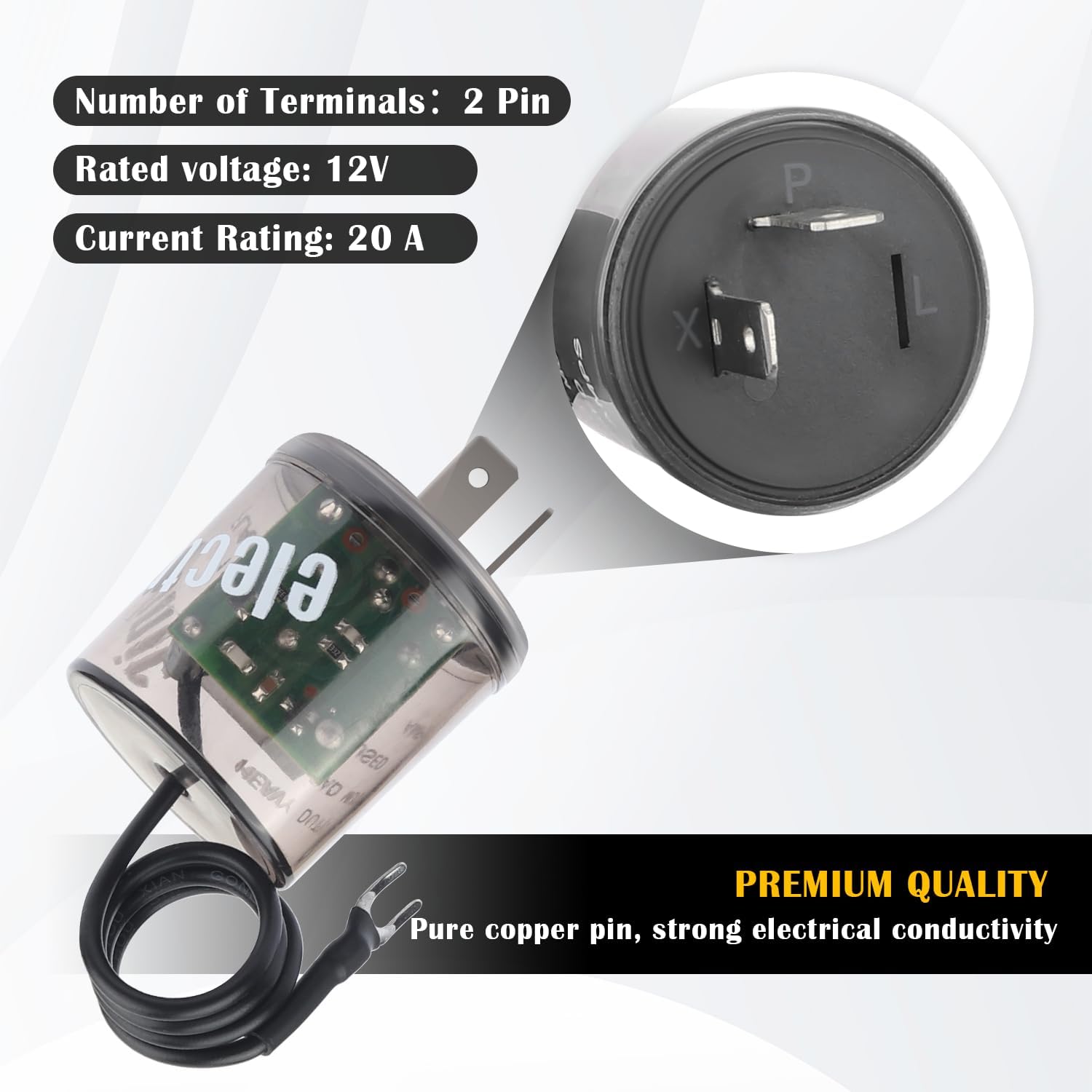 The flash relay is made of thickened ABS plastic housing, which has good durability and waterproof. Pure copper wire design can effectively reduce resistance heat, increase power and effectively protect the internal electronic components. this flasher not only controls the circuit to make the left and right rear lights and trailer lights come on and sends out brake signals, but also quickly identifies and fixes LED light failures, unstable voltages, and other causes of flickering problems, so this helps improve driving safety. Measures 1.92x1.36x1.36 inches and is rated at 12 volts. Simply plug the flasher relay into the corresponding power outlet and the connect the ground wire.