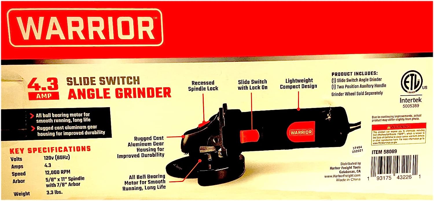 Warrior Slide Switch 12000 RPM Angle Grinder 58089